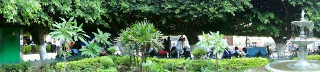 Der schönste Platz in Guanajuato ist der Jardin de la Union. Vor lauter Lorbeerbäumen kann man den Platz aber nicht überblicken.