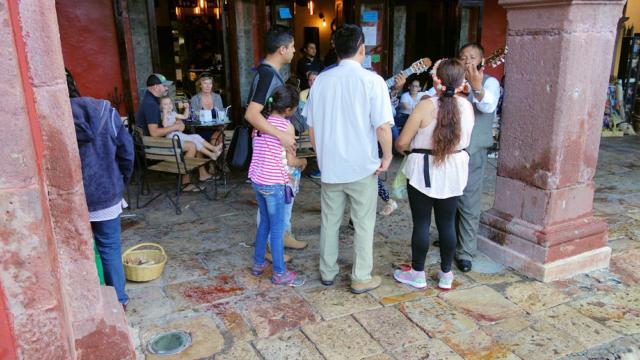 Nach einem heftigen Regenschauer mussten wir uns weiter in die Lauben zurückziehen.