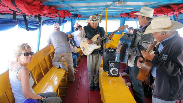 Die Musikanten begleiten uns die ganze Fahrt. Sie spielen gegen einen kleinen Obolus.