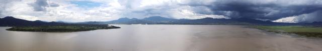 und nach Süden gegen Pátzcuaro. Rechts steht ein Gewitter am Himmel.