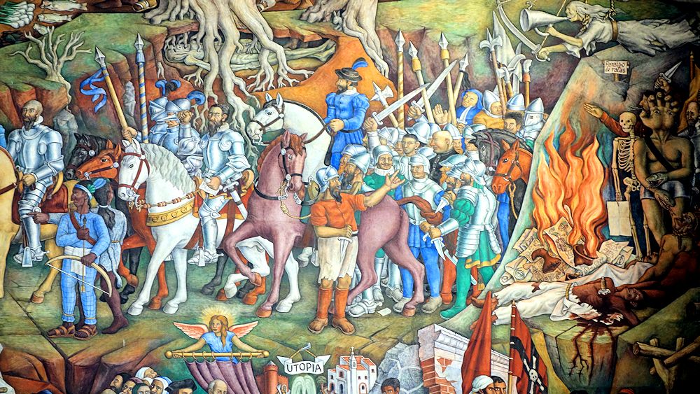 Wie meist werden historische Szenen Mexikos dargestellt: hier Cortez bei seinem Eroberungszug.