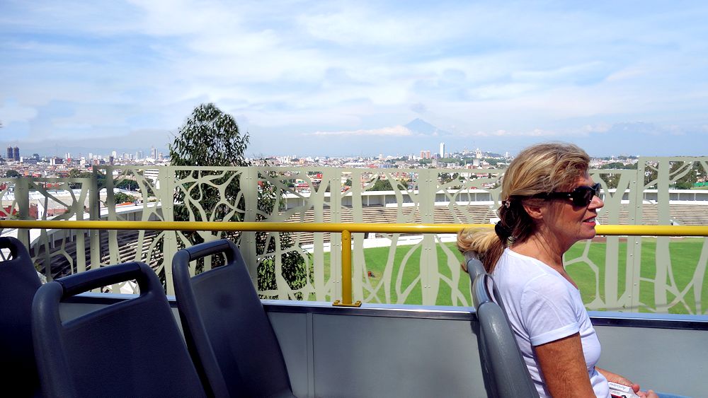 In der Bildmitte kann man den Vulkan Popocatepetl schwach erkennnen ...