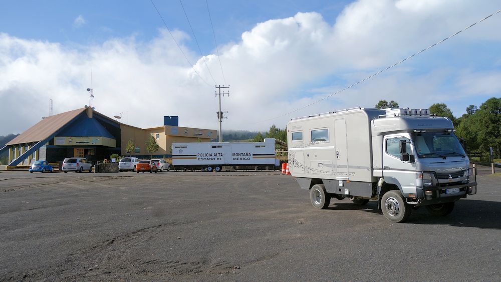 Auf der Passhöhe. Der Popocatepetl hat sich inzwischen hinter Wolken verborgen.