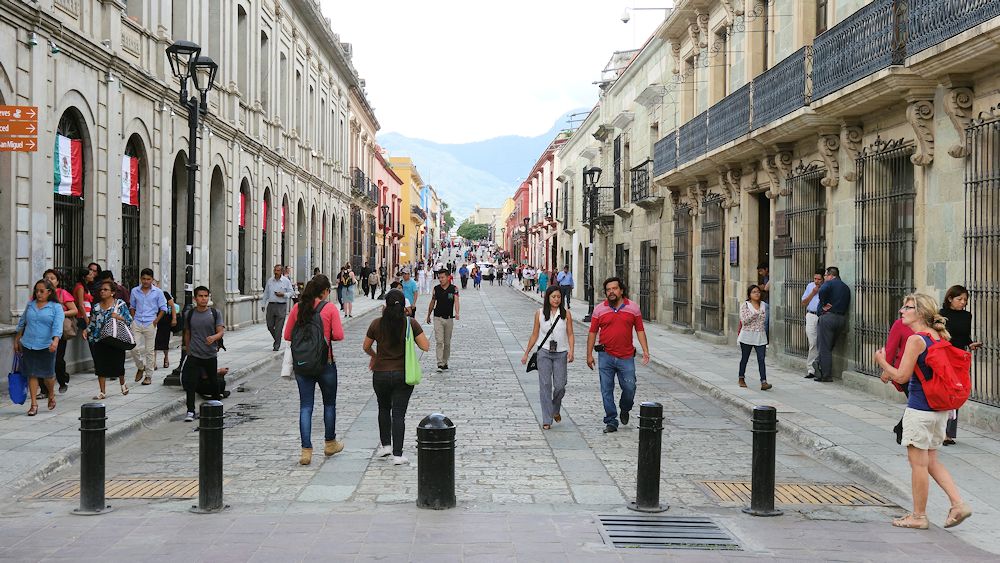 Die Fußgängerzone bietet Zuflucht vor den Abgasen der Autos