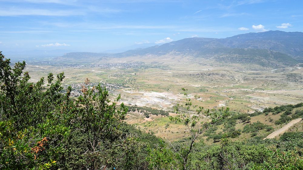 Nach Mitla, das in der Bildmitte in der Ferne zu erkennen ist, geht es steil hinauf.