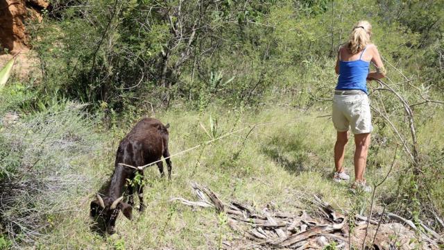 Rita rettet eine Ziege, die sich an ihren Anbindeseil fast stranguliert hätte.