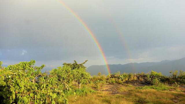 Später fällt ein wenig Regen, der aber einen wunderschönen Regenbogen an den Himmel zaubert.