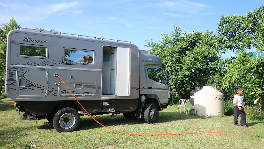 Am Morgen bot uns noch der freundliche Platzwart "agua potabile" an.