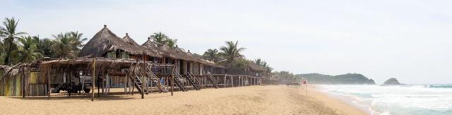Traumkulisse, aber die rote Fahne zeigt es. Baden ist wegen Unterströmungen gefährlich.