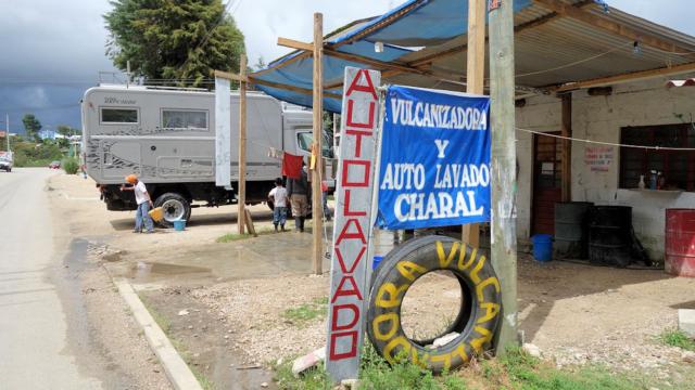 "Auto-Waschanlagen" in Mexiko sind meist solche kleine Familienbetriebe, wo wir in der Regel nicht hineinpassen. Hier konnten wir daneben stehen.