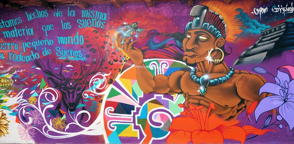 Murales sind überall in Mexiko zu sehen. Dieses schöne Exemplar ist in der "Santiago Diego Dujelay".