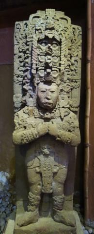 Herrscher Zots-Choj mit drei Chaak-Masken (Regengott) an der Krone.