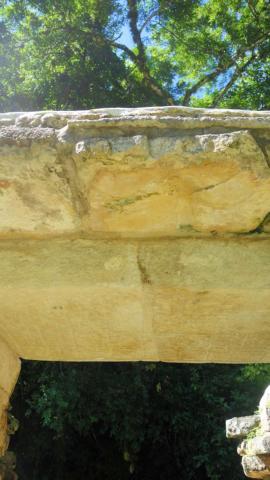 Die Türstürtze tragen an der Unterseite Reliefs. Diese sind aber kaum zu erkennen.