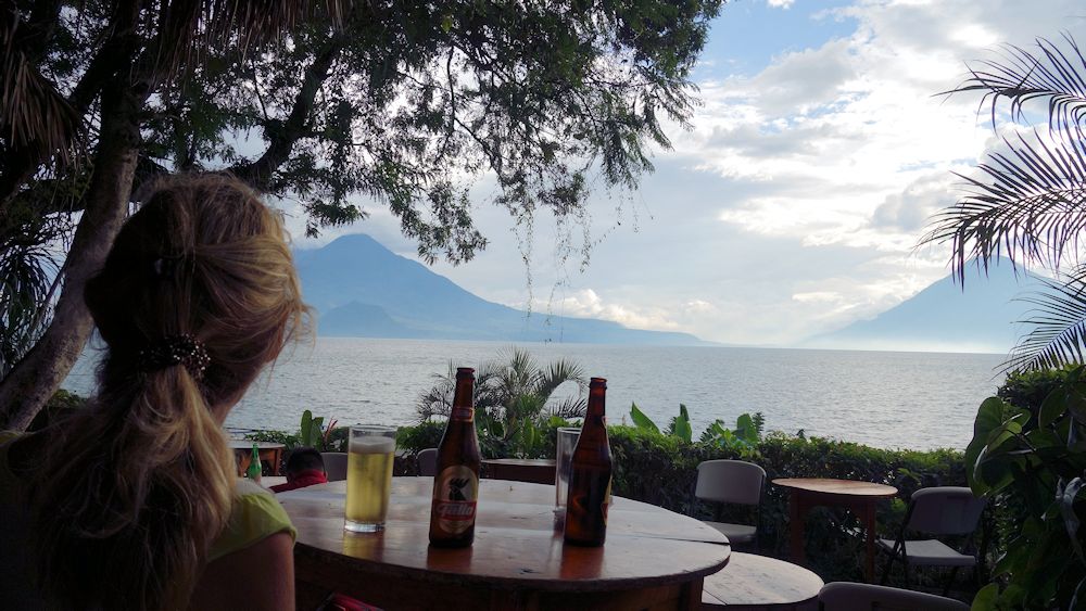 Im "Sunset Cafe" hat man alle drei Vulkane im Blick. Leider ist es wolkig heute.