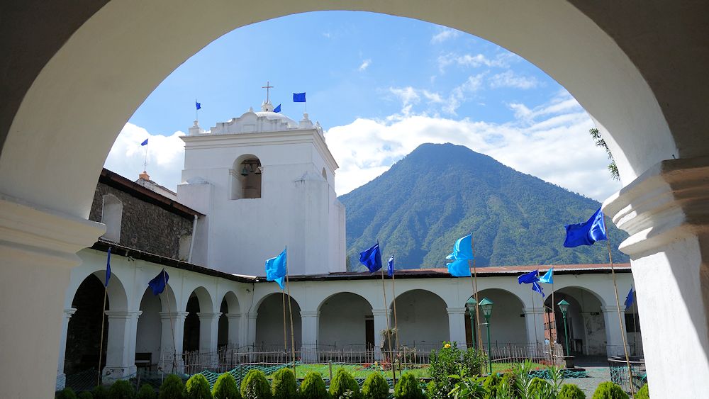 Blick vom ehemaligen Kloster auf den Vulkan San Pedro.