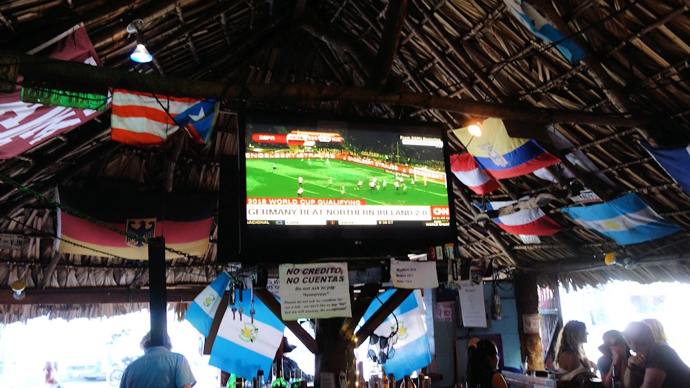Bei der "Happy Hour" in Panajachel erfahren wir auch das Ergebnis des WM-Qualifikationsspiel Deutschland-Nordirland 2:0.