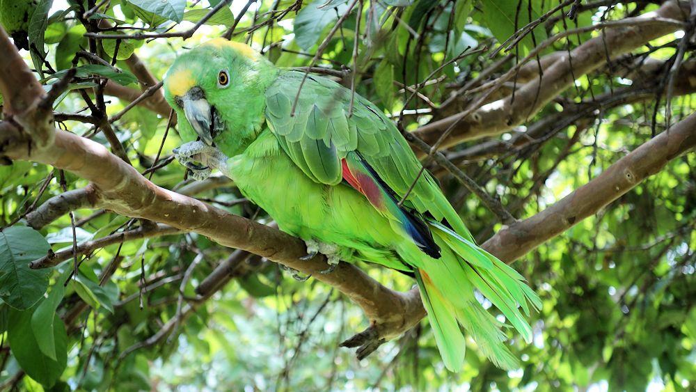 Papageien tummelten sich heute auf unserer Wiese im Baum.