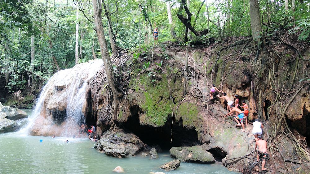 Nur der Wasserfall ist heiß und so klettern die Leute nach oben...