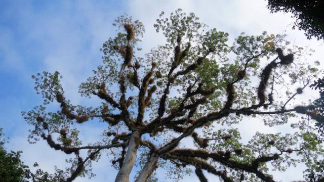 Der Kapokbaum (Ceiba petandra) wird von vielen anderen Pflanzenarten (Orchideen usw.) "bewohnt". Die wasserabweisenden Kapokfasern wurden früher als Polster- und Isoliermaterial verwendet.