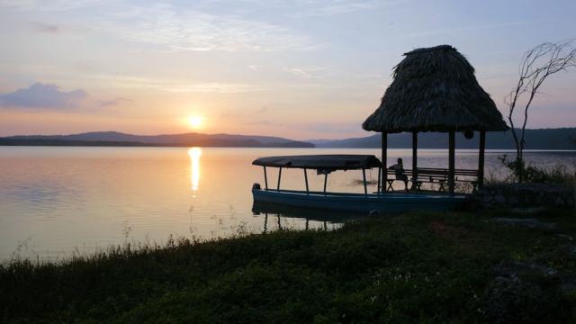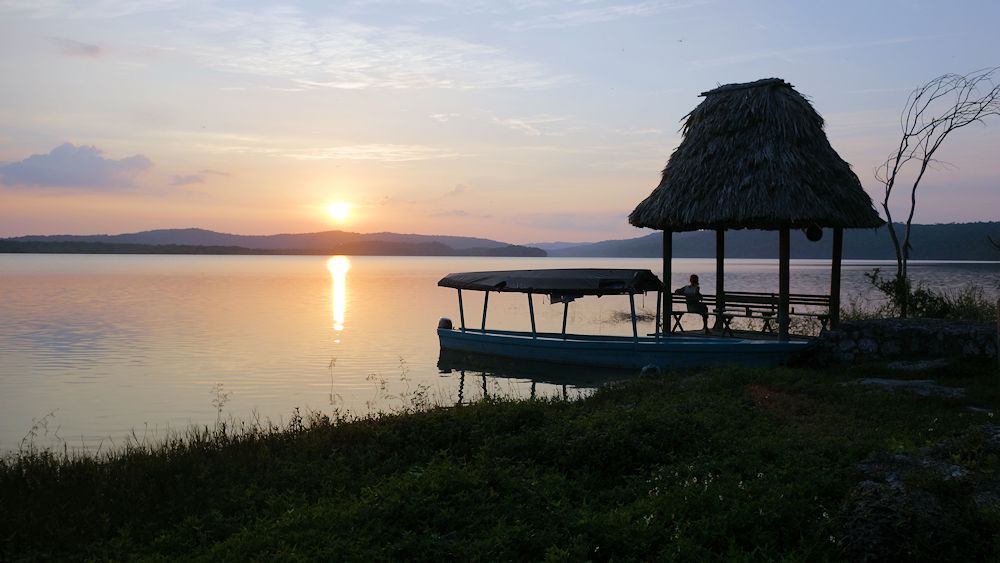 Sonnenuntergang über der Lagune. Wegen der Krokodile in der Lagune ist Baden nicht angesagt.