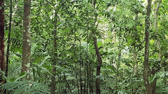 Der Dschungel rechts und links ist wie ein Gemälde von Henri Rousseau.