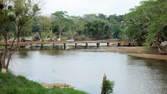 wenn die Holzbrücke weiter flußabwärts in der Regenzeit versunken ist.
