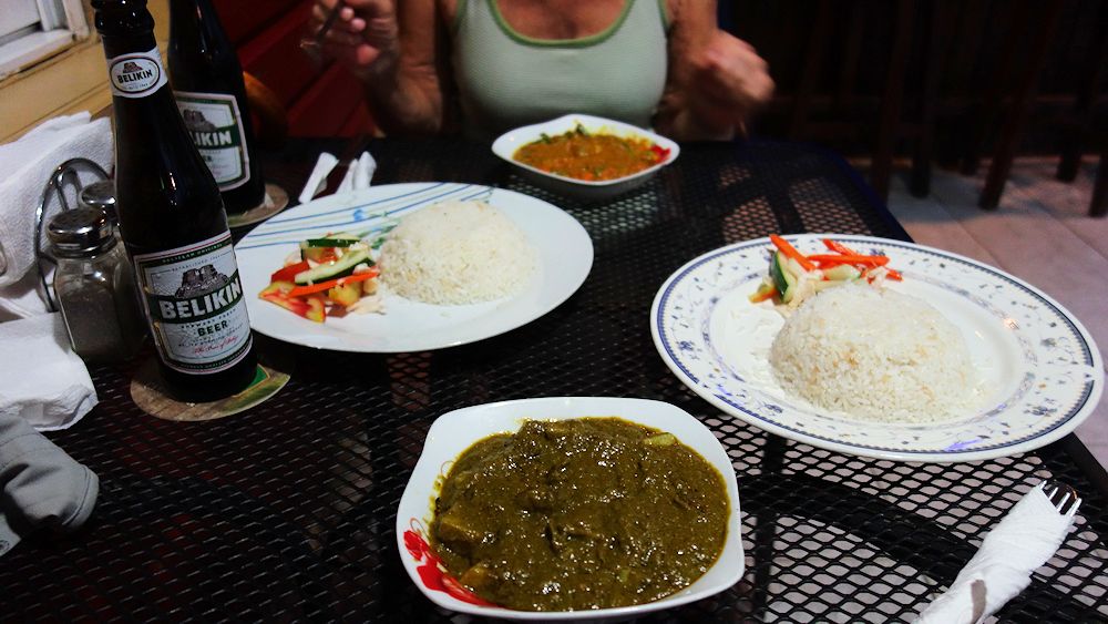 Es gibt viele Volksgruppen in Belize, auch viele Inder. Das indische Restaurant in der Burns Street kocht hervorragend und auch das Belikin Bier ist lecker. Die Brauerei, die einzige in Belize, soll einen deutschen Braumeister haben und der Hopfen stamme ebenfalls aus Deutschland. |