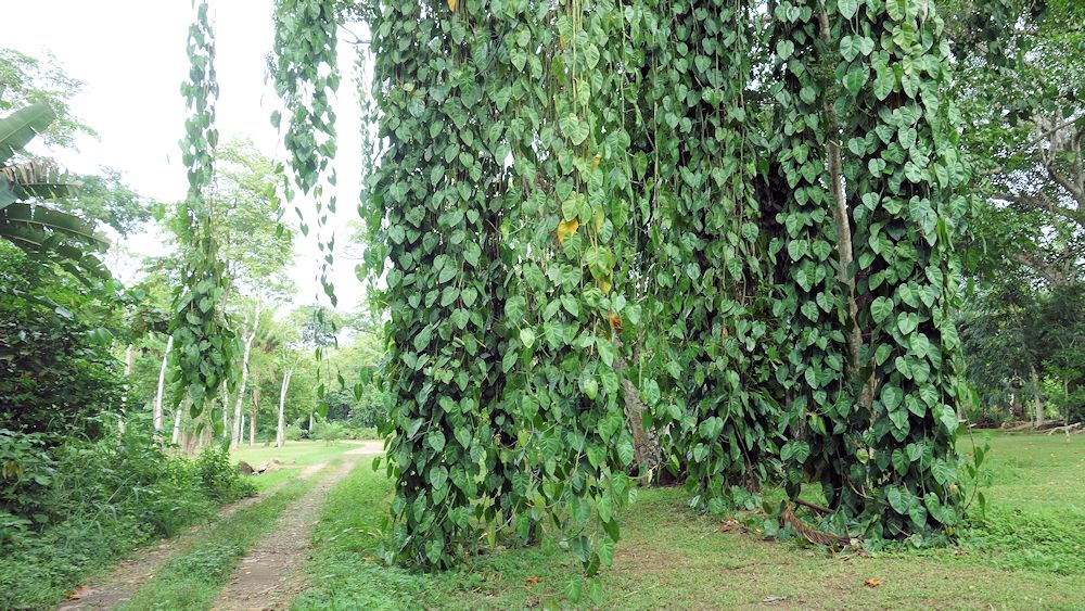 Philodendron als Baum-Schlingpflanze.