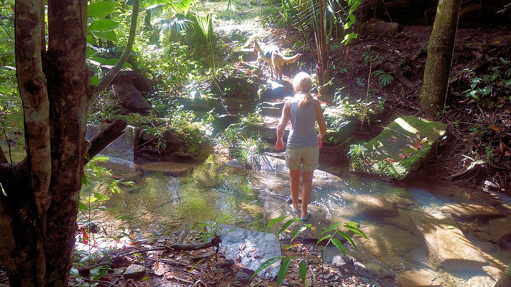 Spaziergang durch den Dschungel zum .... (Der Schäferhund gehört zum Farm Inn)