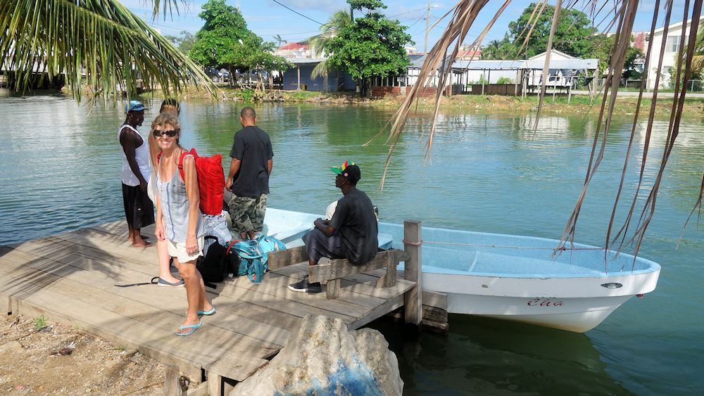 Am Dangriga River ist die Ablegestelle nach Tobacco Caye.