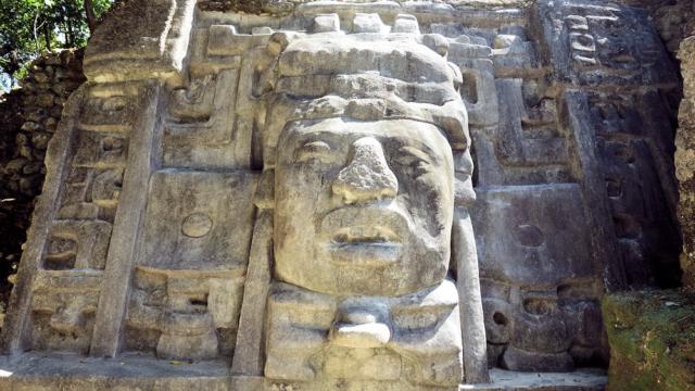 Es ist leider so, die Masken sind Glasfieber-Rekonstruktionen, die Originale sind, um sie der Nachwelt zu konservieren, dahinter, hinter den Steinen, plaziert worden.