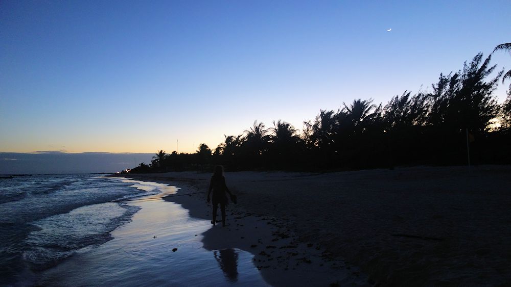 Der Mond ist zur Zeit ein schmales liegendes Schiffchen am Himmel.
