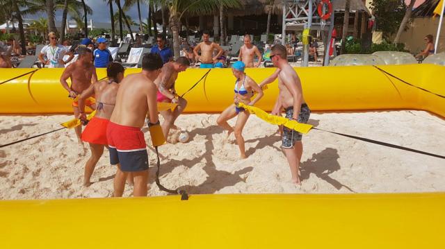 Am Hotel weiter unten spielen sie "Tischfußball" mit lebenden Personen.