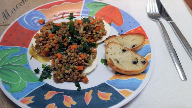 Unser Weihnachtsessen: lauwarmer Linsensalat auf Mozarelle