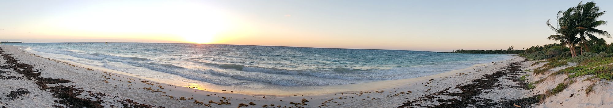 interessant das tägliche Strandgeschehen zu erleben. Mit Kind und Kegel haben die Mexikaner die Tage am Strand verbracht.Obwohl wir, um nicht einzurosten, zweimal täglich den Strand ablaufen (sind so 5-6 km), können wir jedesmal neue Sachen entdecken. Auch verändert sich der Strand ständig: Neue Sandbänke entstehen und an anderen Stellen wird der Sand abgetragen. Würde nicht ständig das angespülte Strandgut und das Seegras entfernt, wäre der Strand auch bald "Naturstrand".