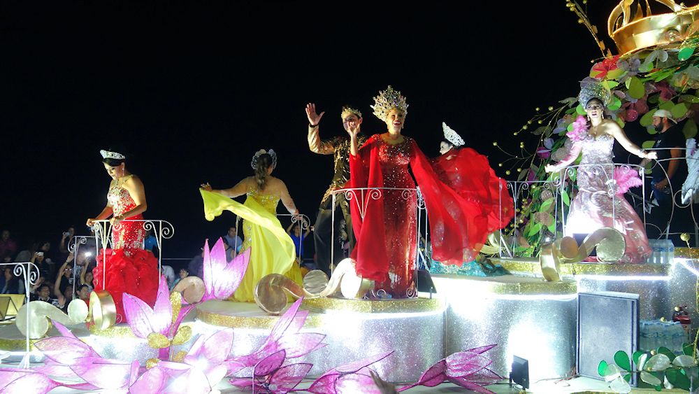 Es waren wohl mehrere tausend Akteure die an den unzähligen Zuschauern vorbeizogen und uns ein einmaliges Erlebnis boten. Die Großwagen haben wohl alle ein Thema, allerdings nichts politisches oder gesellschaftskritisches, sondern sind wohl nur Staffage für tanzende Chicas und Chicos.