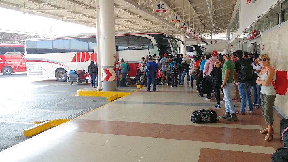 Also mit dem Taxi wieder zurück zum Terminal (zum Glück sind die Taxipreise nicht so hoch) und die Mitarbeiter von ADO haben sich, so war unser Eindruck, redlich bemüht, aber das IPad war nicht aufzufinden. So war zwar die Busfahrt mit 560 Pesos p.P. (24 €) nicht so teuer, aber der Tag dann schon.