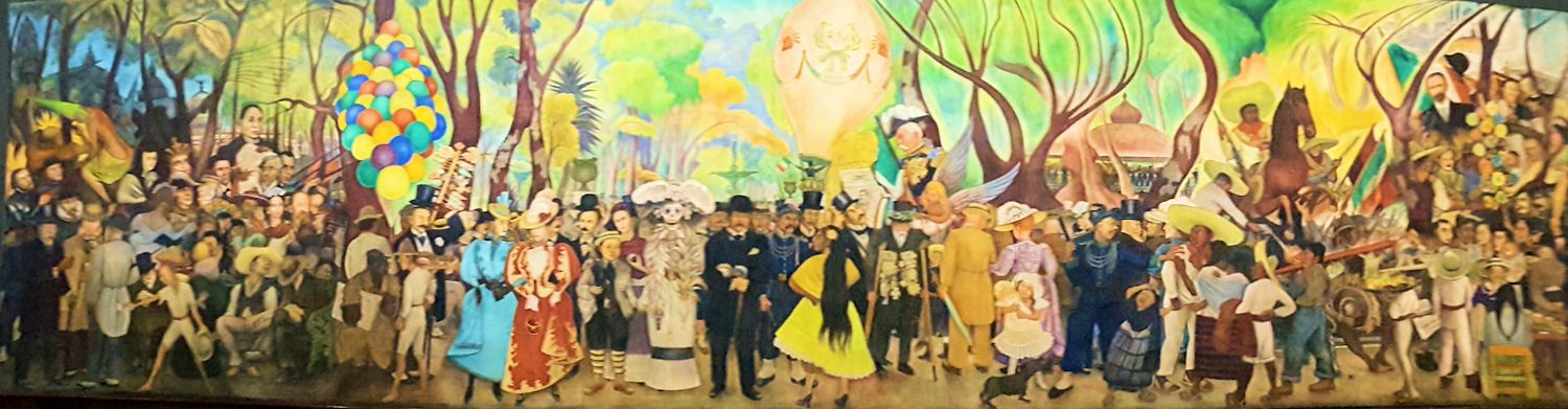Rivera war ja auch mit Frida Kahlo verheiratet, ebenso ein berühmte Malerin, die auch im Bild verewigt ist.