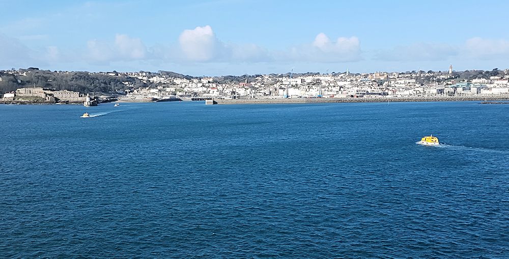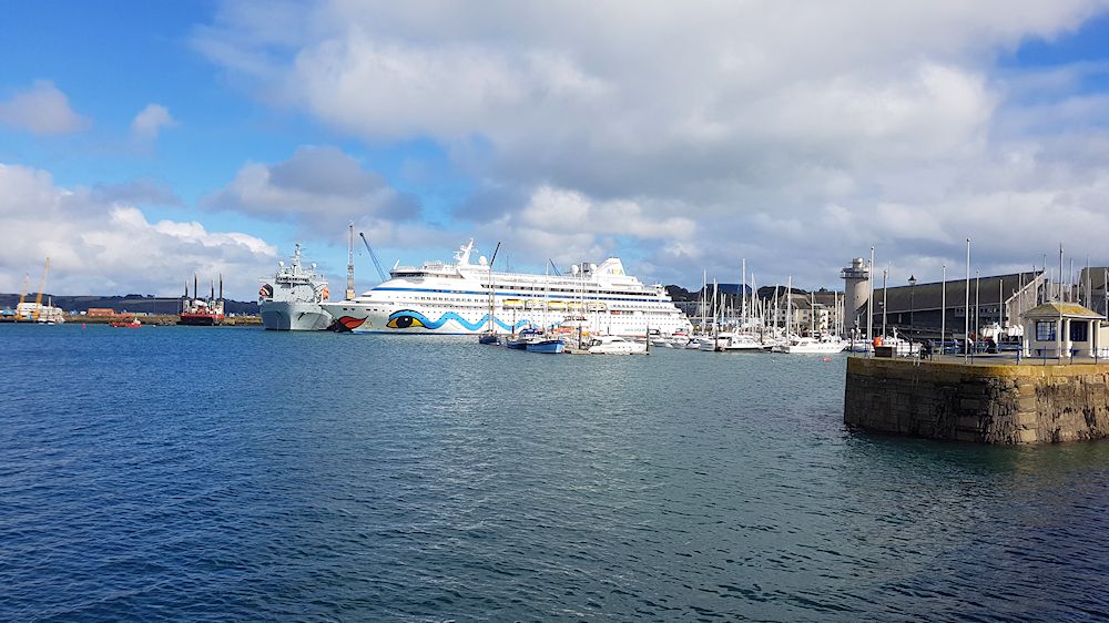 21.03.2017, Saint Peter Port, GuernseyDer Hafen von Saint Peter Port auf der Kanalinsel Guensey ist zu flach für die AIDAvita. Wir ankerten deshalb, das einzigemal auf dieser Reise, auf Reede. Den ganzen Tag fuhren Tenderboote vom Schiff zum Hafen.