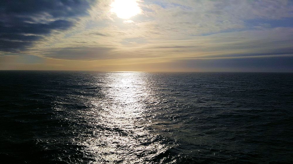 Wenn wir mit unserem Wohnmobil durch die Lande gondeln, "erfahren" wir im wahrsten Sinne des Wortes das Land. Die Weite, die Topographie, das Klima, die Bewirtschaftung und die Menschen. Fliegt man in ein fernes Land, kann man sich die zurückgelegten Entfernungen nicht richtig vorstellen. Aber bei der Überquerung des Ozeans in einem Schiff bekommt man ein Gefühl für die gewaltige Größe der Ozeane (immerhin 70 % der Erdoberfläche sind Ozean). Insofern war die Rückreise eine Fortsetzung des Reisens mit dem Wohnmobil. Wenn auch bei All-Inclusive.