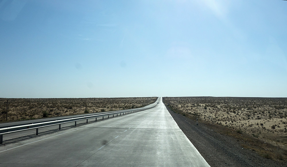 18.09.2018, Buchara, Usbekistan Die für heute angekündigten über 400 km sollten teils hervorragende Autobahn (gebaut von Hoch-Tief) und sehr schlechte Landstraße sein. Und so war es. Die reine Fahrzeit betrug über 8 Stunden für uns.