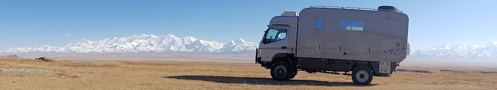 Aber danach sind wir ins richtige Kirgistan gefahren und die Landschaft wurde immer spektakulärer. Von Osh, 1.000 m hoch, ging es zum Taldyk-Pass, der 3.615 m hoch liegt. Und auf dieser Straße passierte Toni und Marthi fast das Schlimmste was man sich vorstellen kann: Von einem entgegenkommenden kirgisischen Kleinlaster hatten sich die Doppelräder gelöst und und eines krachte ihrem Wohnmobil in die Front. Der Kühler war kaputt und das vor dem sehr hohen Pass. Unser Servicewagen mit Manni hat Toni´s Wohnmobil auf die Schleppstange genommen und über den Pass gezogen. Alles hat sehr gut geklappt.