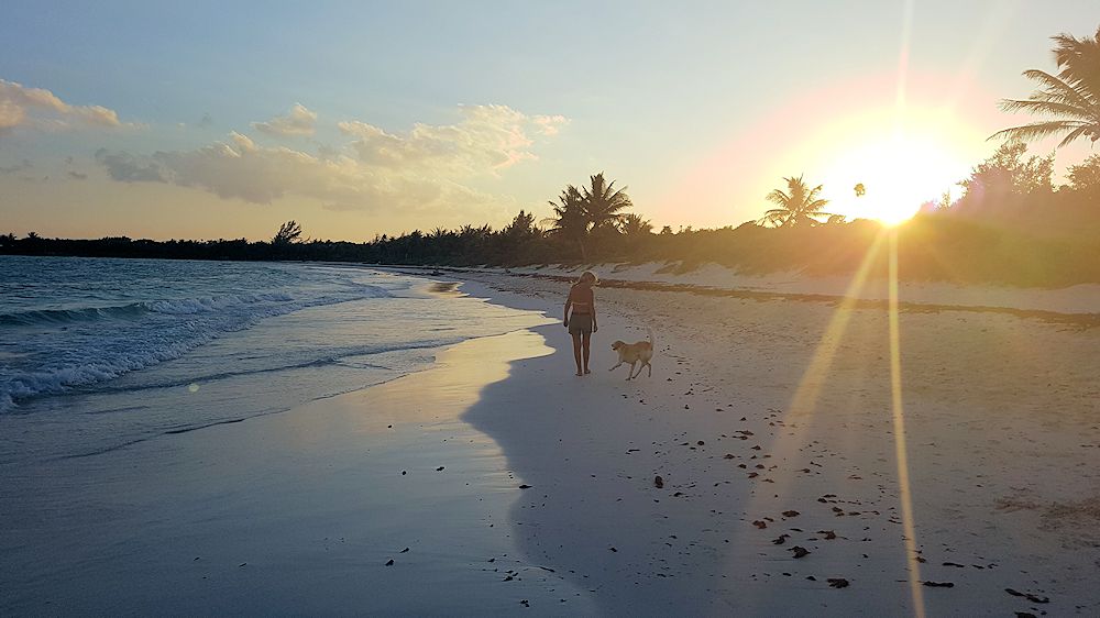 Für den Abendspaziergang haben wir eine neue Begleiterin gefunden: Elfie, der Hund unserer Nachbarin.
