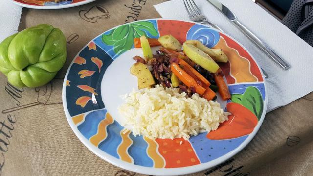 Wie werden wir das Vermissen: Chayote (die grüne Frucht, schmeckt wie Kohlrabi), vollreife Anananas, Mango, Papaya usw.