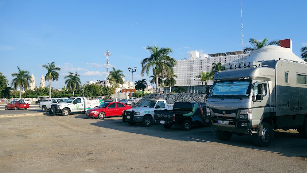 In der Stadt Campeche parken wir bei der Tourist Info, gleich bei der Altstadt und am Malecon.