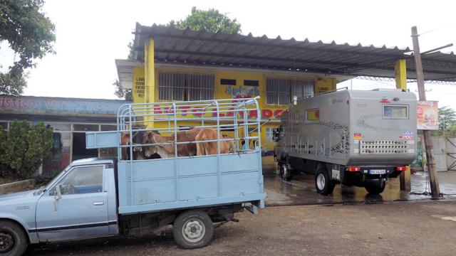 Nachdem wir das LKWl'le mal gründlich abspritzen ließen, haben wir es auch noch innen und in den Klappen herausgeputzt. Schließlich soll es in Europa ja ordentlich ankommen.