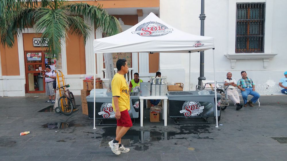 Auch die Bierverkäufer harren der Dinge.