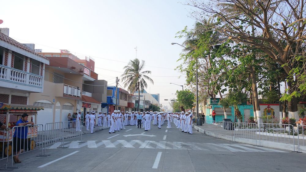 Die Kadetten der Marineschule sind aufmarschiert und sollen wohl Ordnungsdienst machen zum Umzug.