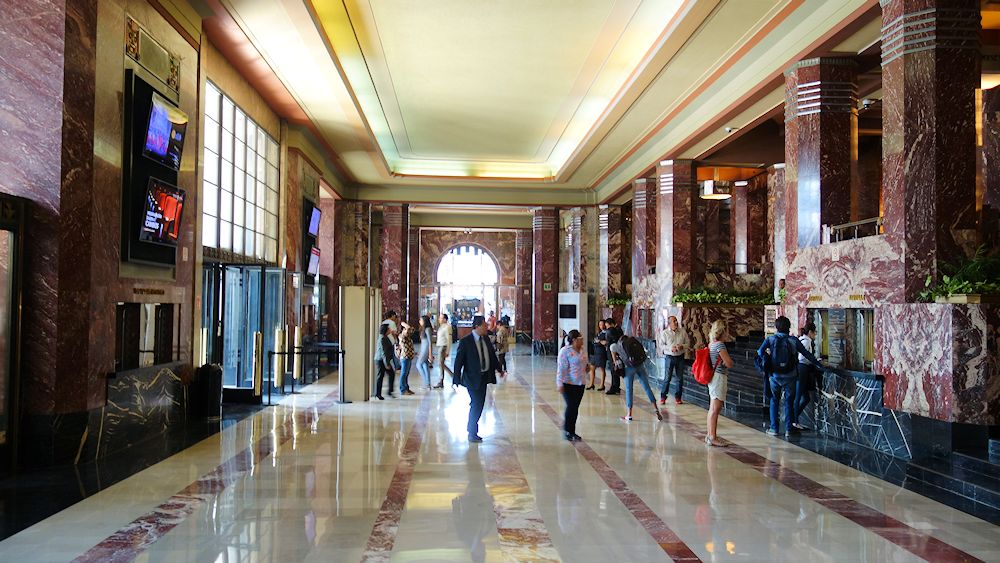 Innen verschwenderisch mit schwarzem, weißem und rotem Marmor verziert.