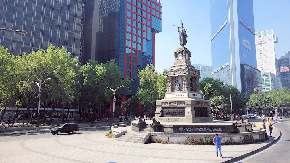 Estatue de Cuauhtémoc, des Nachfolgers von Montezuma. Montezuma wird von den Mexikanern verachtet, weil er praktisch sich kampflos Cortez unterwarf. Cuauhtémoc hat jedoch weiter Widerstand geleistet, wenn auch vergebens.